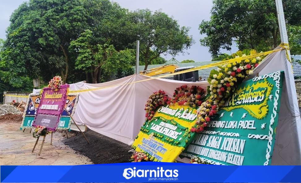Saat proses penyegelan berlangsung, terlihat sejumlah karangan bunga terpasang di area lokasi. Salah satunya berasal dari Wakil Walikota Tangsel, Pilar Saga Ichsan.